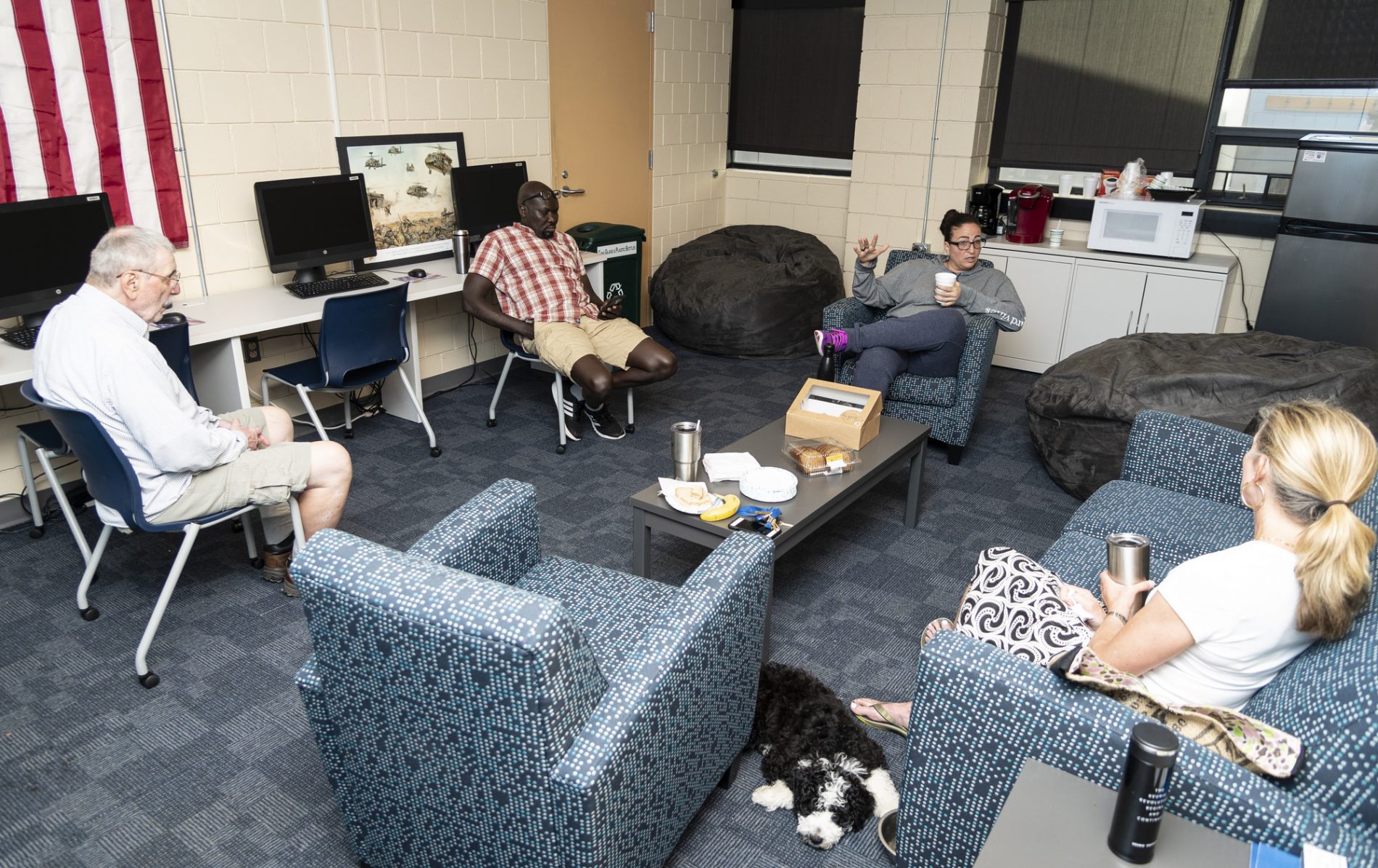 Since the soft opening, the campus has hosted a Veterans Coffee Social every Tuesday morning. From 9 a.m. to 10:30 a.m., veteran students and veterans from the community are invited to the Lynn lounge to connect with one another.