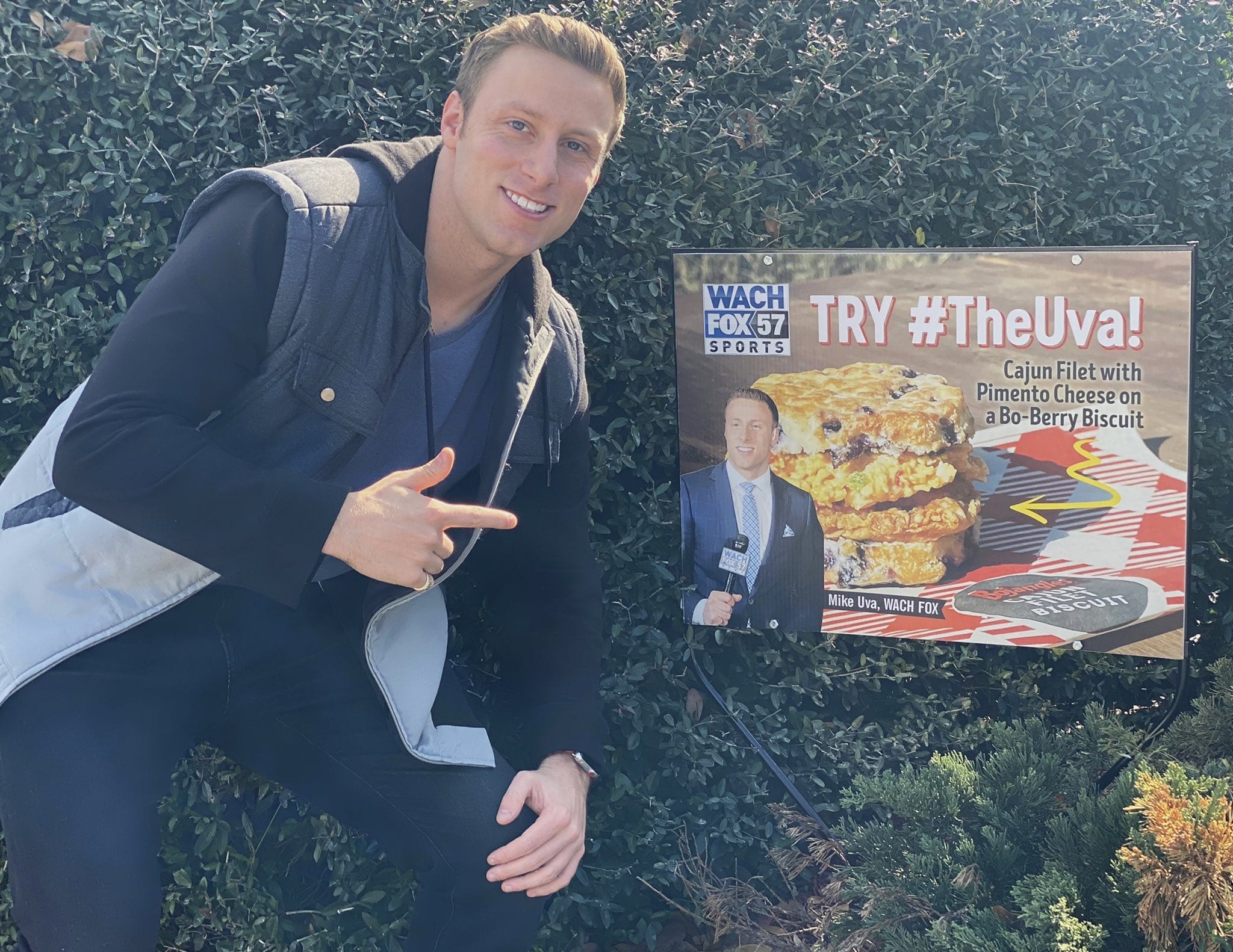 “It all started as an accident to be honest,” said Uva, who has worked as a sports anchor and reporter at WACH FOX 57 in Columbia, S.C. since 2016. “Obviously being from up in Massachusetts I had never even heard of Bojangles before I got down here, but everyone told me it was a good place to eat.”
