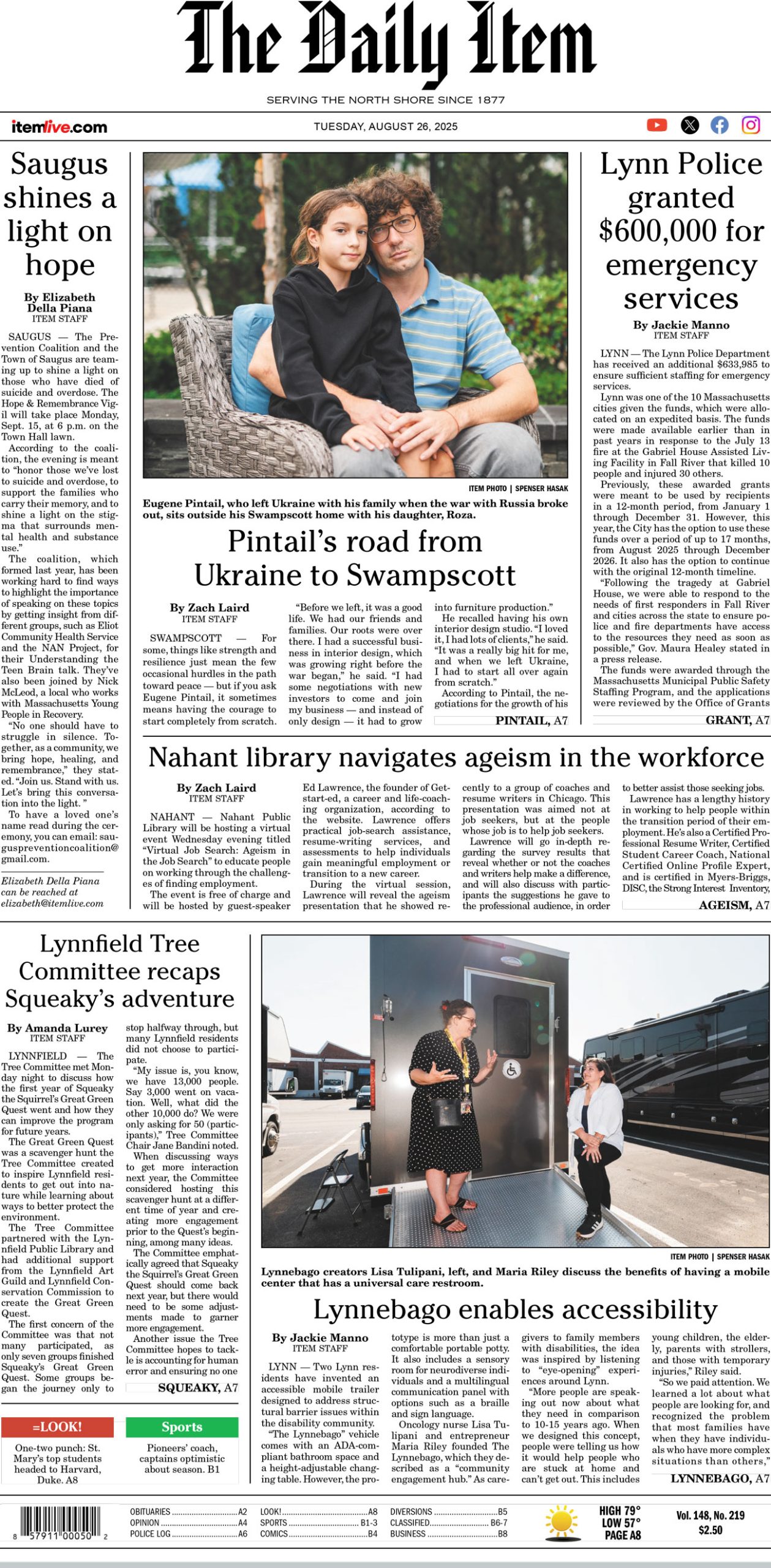 Today’s page 1: 8-26-25 Daily Item StaffAugust 25, 2025 by Daily Item Staff Daily Item Staff View all posts Related posts: No related posts.