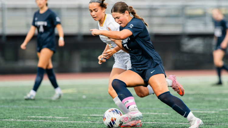 Three minutes into the second half, Skabeikis struck again. From outside the box, she curled a shot into the top corner over the outstretched hand of Fenwick’s goalkeeper, completing her hat-trick and giving the Spartans their first lead (3-2).