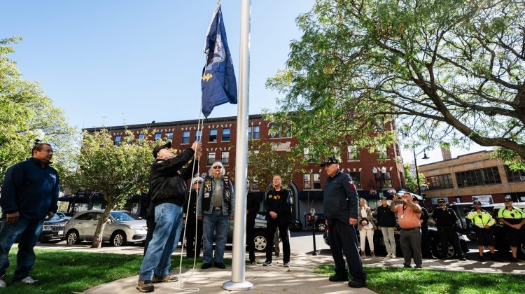 The flag was raised outside City Hall by Navy veterans Jim Marshall, Walter Gutherie, and Milton Laub. Mayor Jared Nicholson then presented a proclamation from his office.