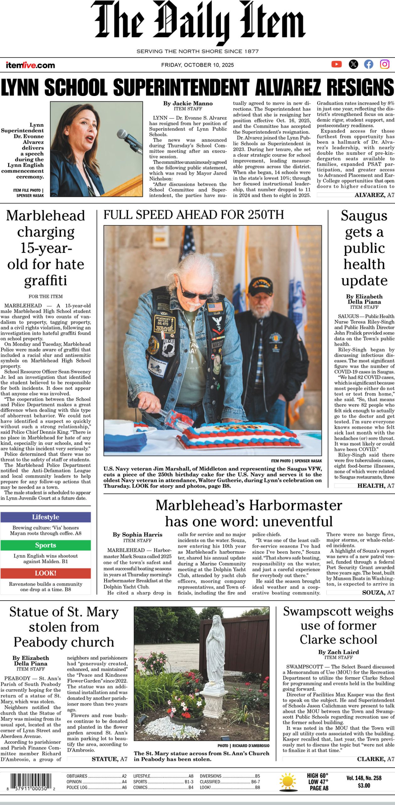 Today’s page 1: 10-10-25 Daily Item StaffOctober 9, 2025 by Daily Item Staff Daily Item Staff View all posts Related posts: No related posts.