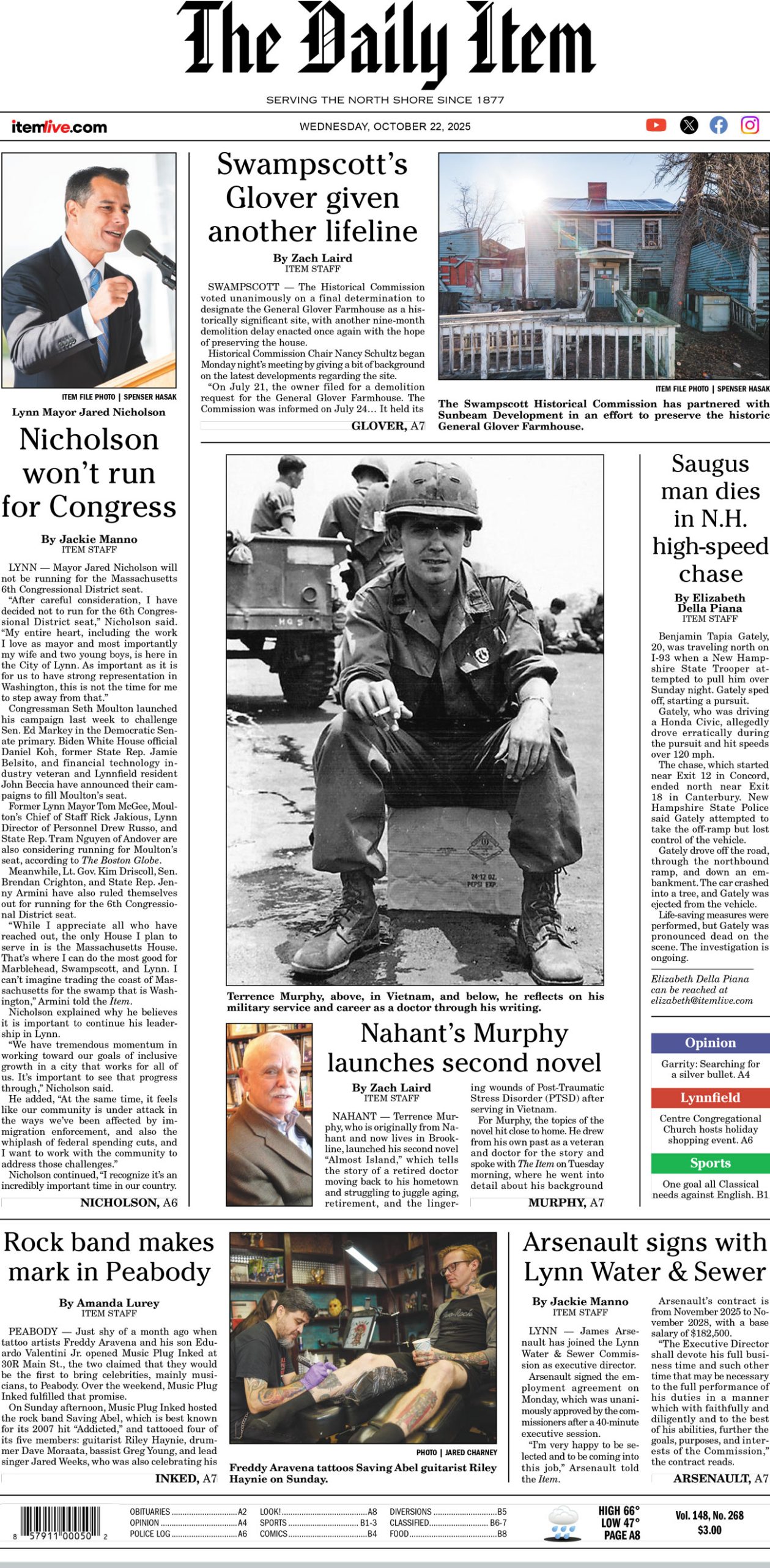 Today’s page 1: 10-22-25 Daily Item StaffOctober 21, 2025 by Daily Item Staff Daily Item Staff View all posts Related posts: No related posts.