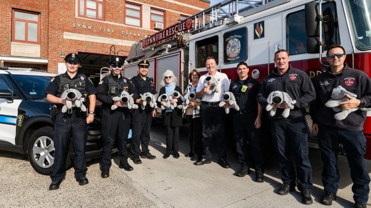 LYNN — The Lynn Police and Fire Departments were given 60 plush dog toys named “Trouble” to comfort children in distress on Thursday.