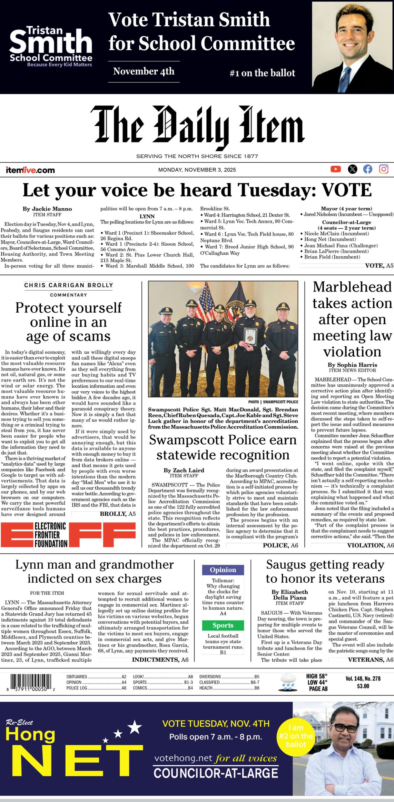 Today’s page 1: 11-3-25 Daily Item StaffNovember 2, 2025 by Daily Item Staff Daily Item Staff View all posts Related posts: No related posts.