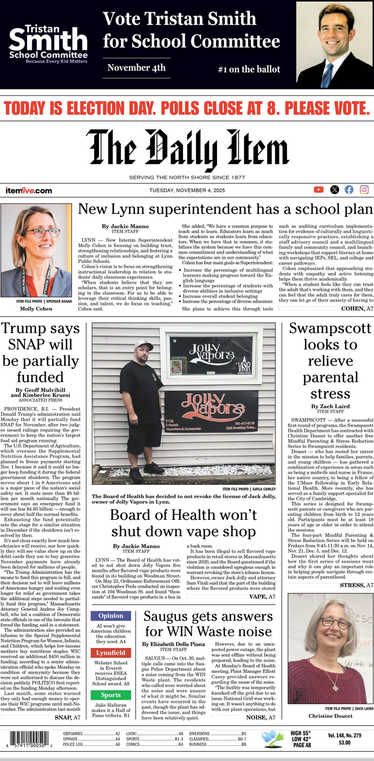 Today’s page 1: 11-4-25 Daily Item StaffNovember 3, 2025 by Daily Item Staff Daily Item Staff View all posts Related posts: No related posts.