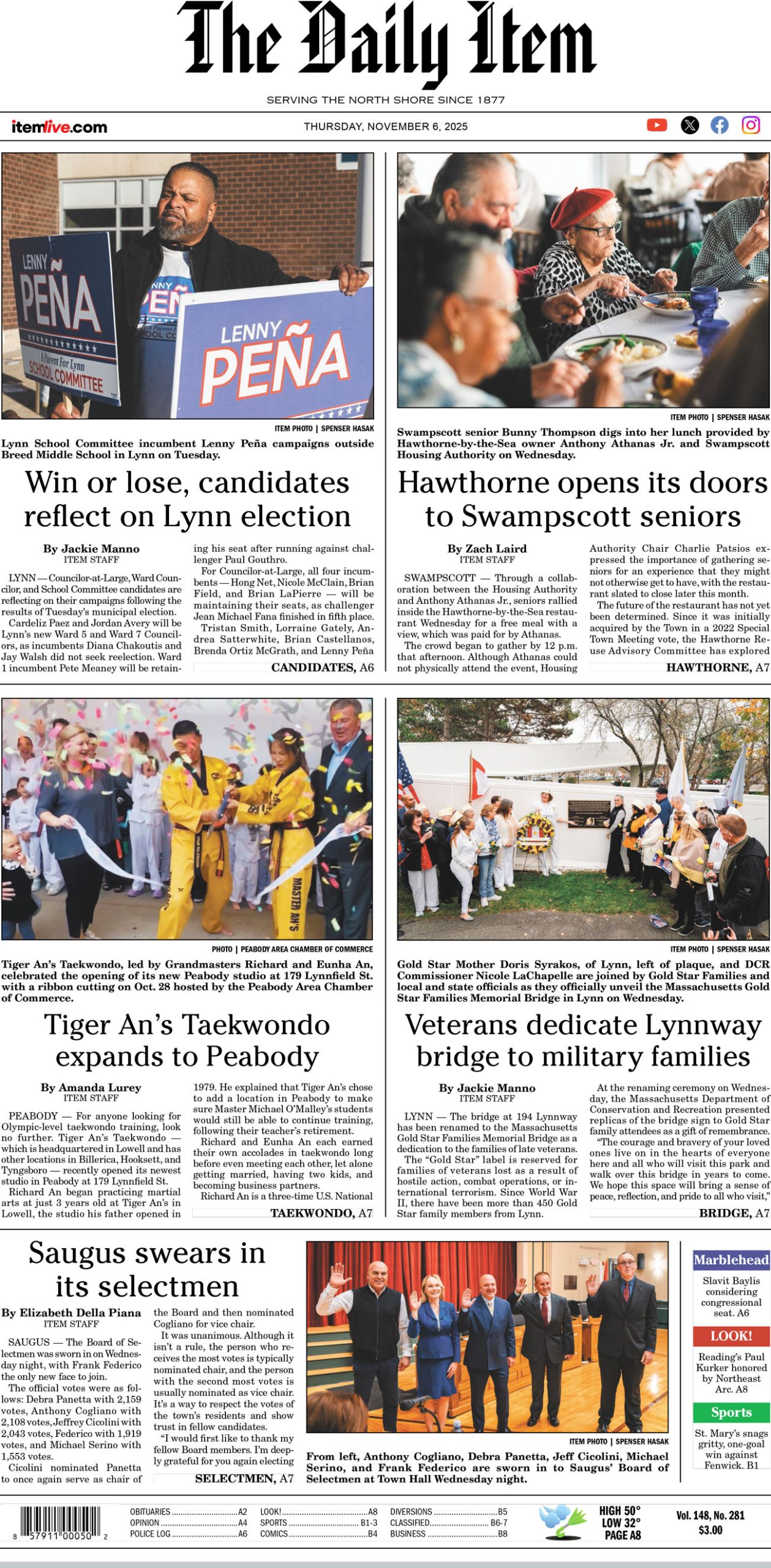 Today’s page 1: 11-6-25 Daily Item StaffNovember 5, 2025 by Daily Item Staff Daily Item Staff View all posts Related posts: No related posts.