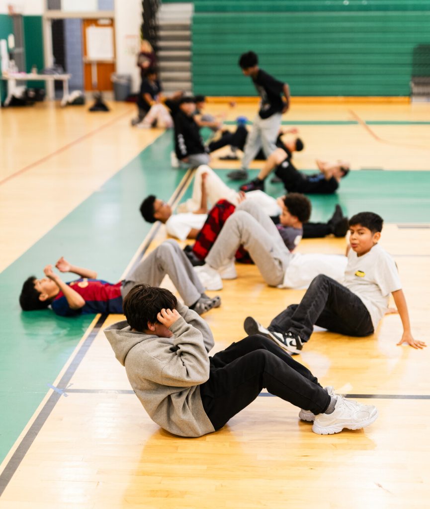 The LEAP for Education physical fitness group learns how to do proper sit-ups during their after school program at Thurgood Marshall Middle School in Lynn on Wednesday.