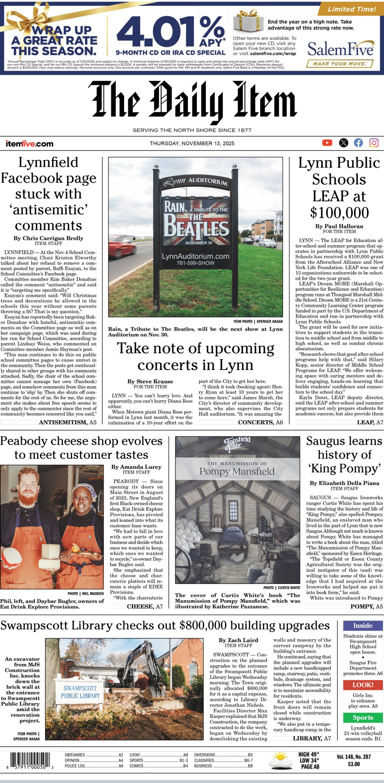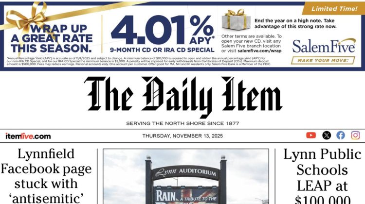 Today’s page 1: 11-13-25 Daily Item StaffNovember 12, 2025 by Daily Item Staff Daily Item Staff View all posts Related posts: No related posts.