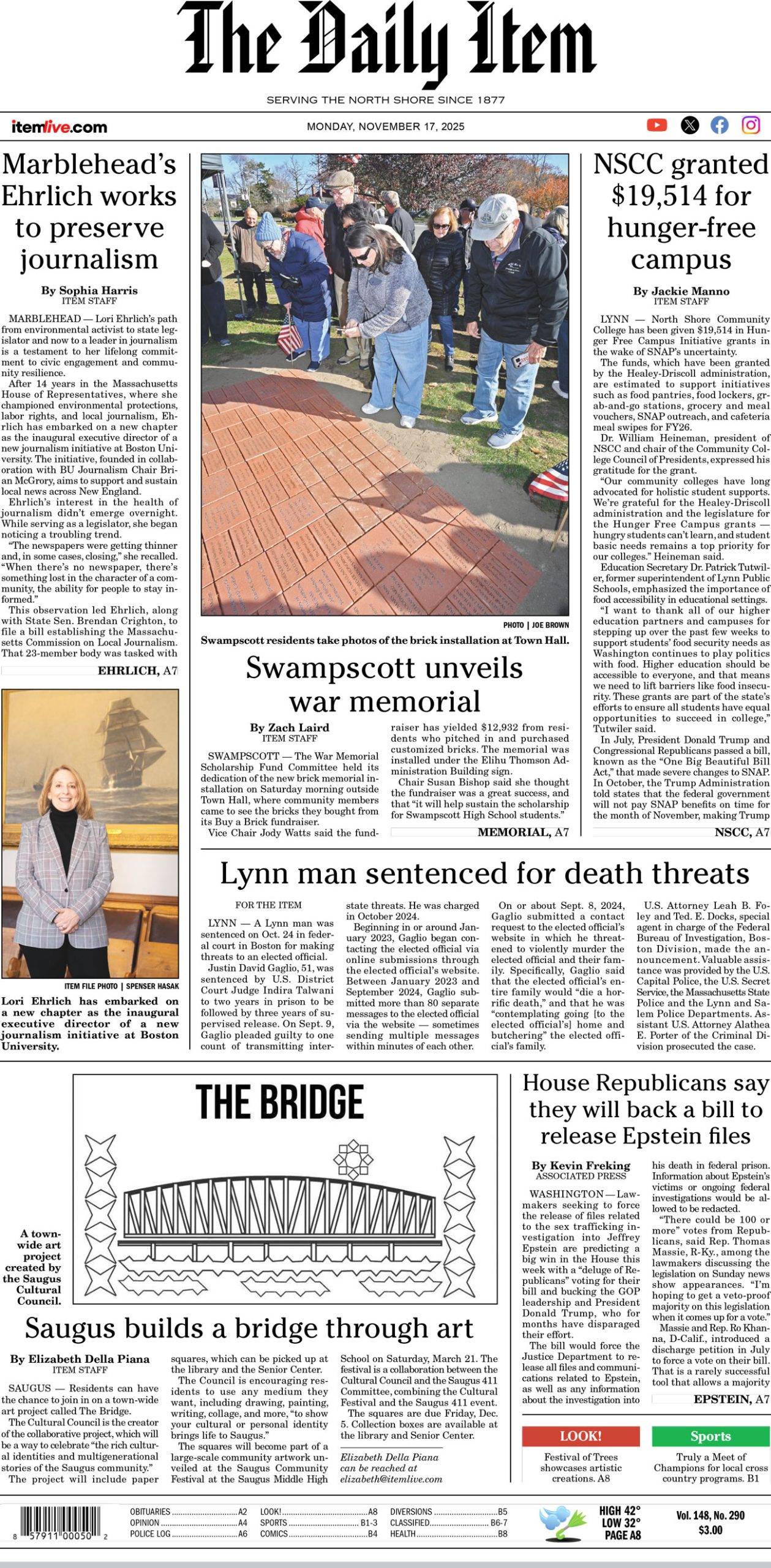 Today’s page 1: 11-17-25 Daily Item StaffNovember 16, 2025 by Daily Item Staff Daily Item Staff View all posts Related posts: No related posts.