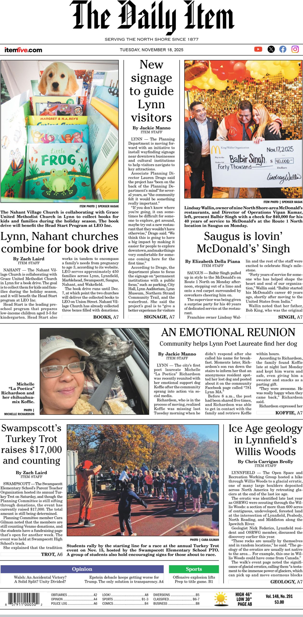 Today’s page 1: 11-18-25 Daily Item StaffNovember 17, 2025 by Daily Item Staff Daily Item Staff View all posts Related posts: No related posts.