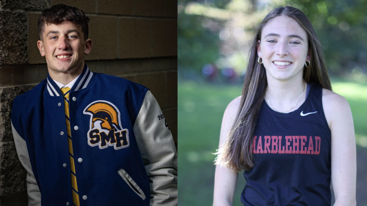For their accomplishments in the classroom and their respective athletic endeavors, St. Mary’s football and basketball standout Sam Phelps and Marblehead cross country star Marri O’Connell have been chosen as the Moynihan Lumber North Shore Student-Athletes of the Month for October.