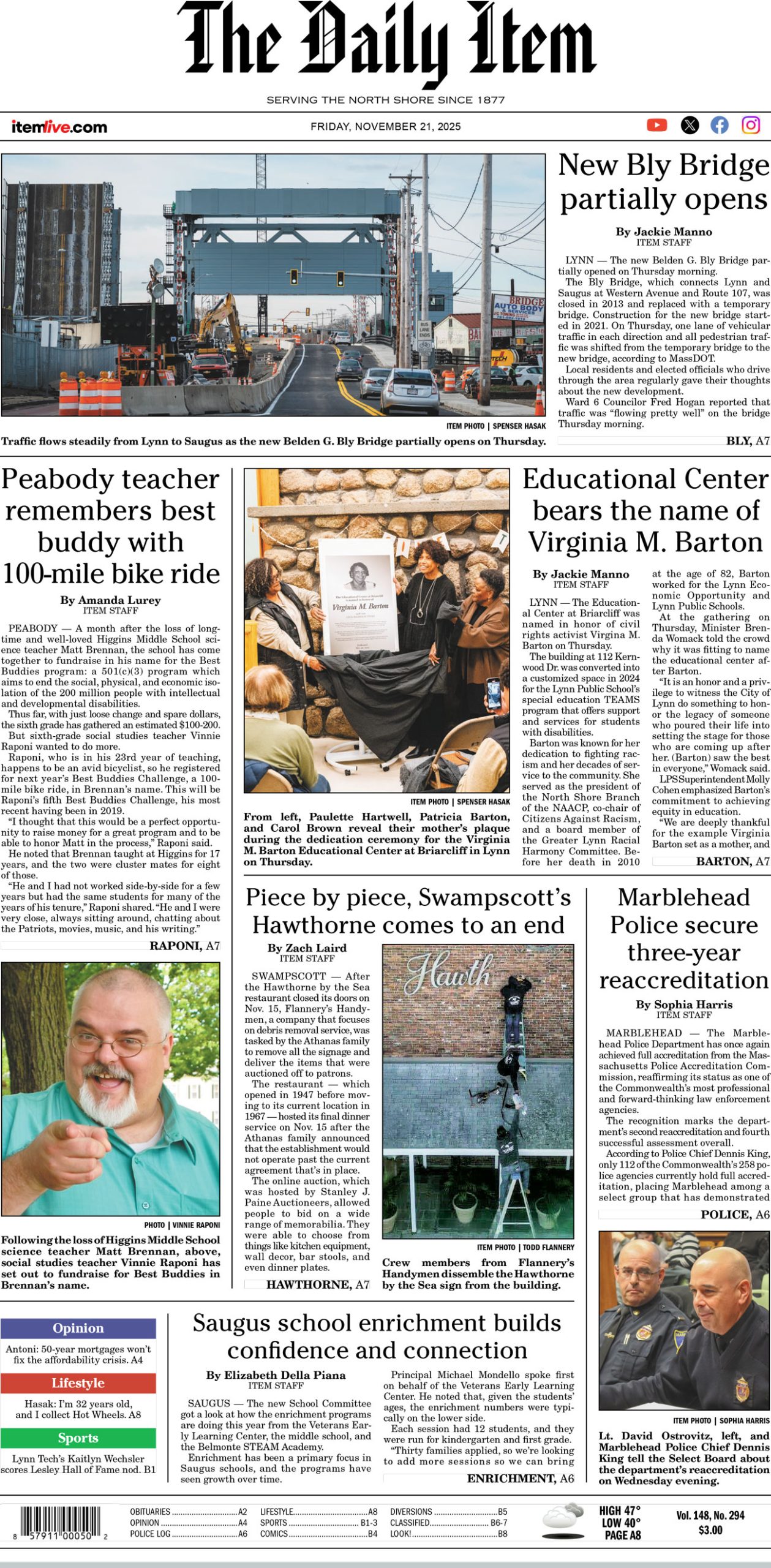 Today’s page 1: 11-21-25 Daily Item StaffNovember 20, 2025 by Daily Item Staff Daily Item Staff View all posts Related posts: No related posts.
