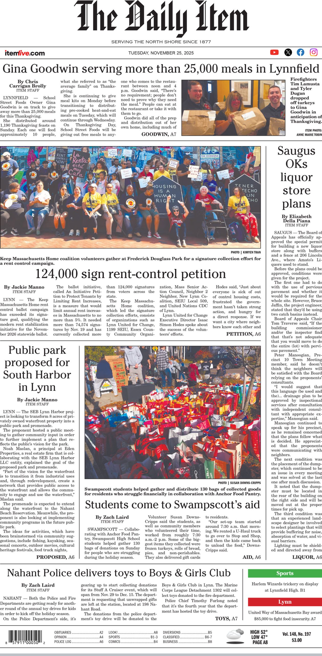 Today’s Page 1: November 25, 2025 Daily Item StaffNovember 24, 2025 by Daily Item Staff Daily Item Staff View all posts Related posts: No related posts.