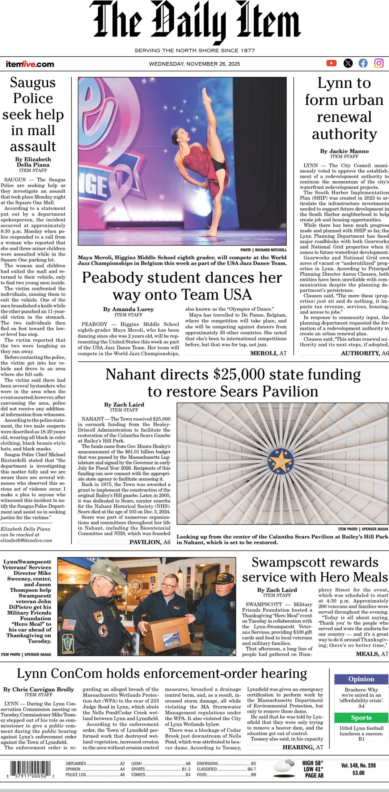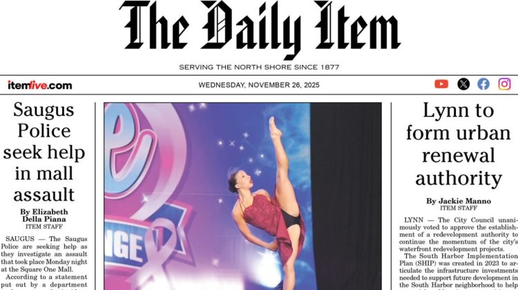 Today’s page 1: 11-26-25 Daily Item StaffNovember 25, 2025 by Daily Item Staff Daily Item Staff View all posts Related posts: No related posts.
