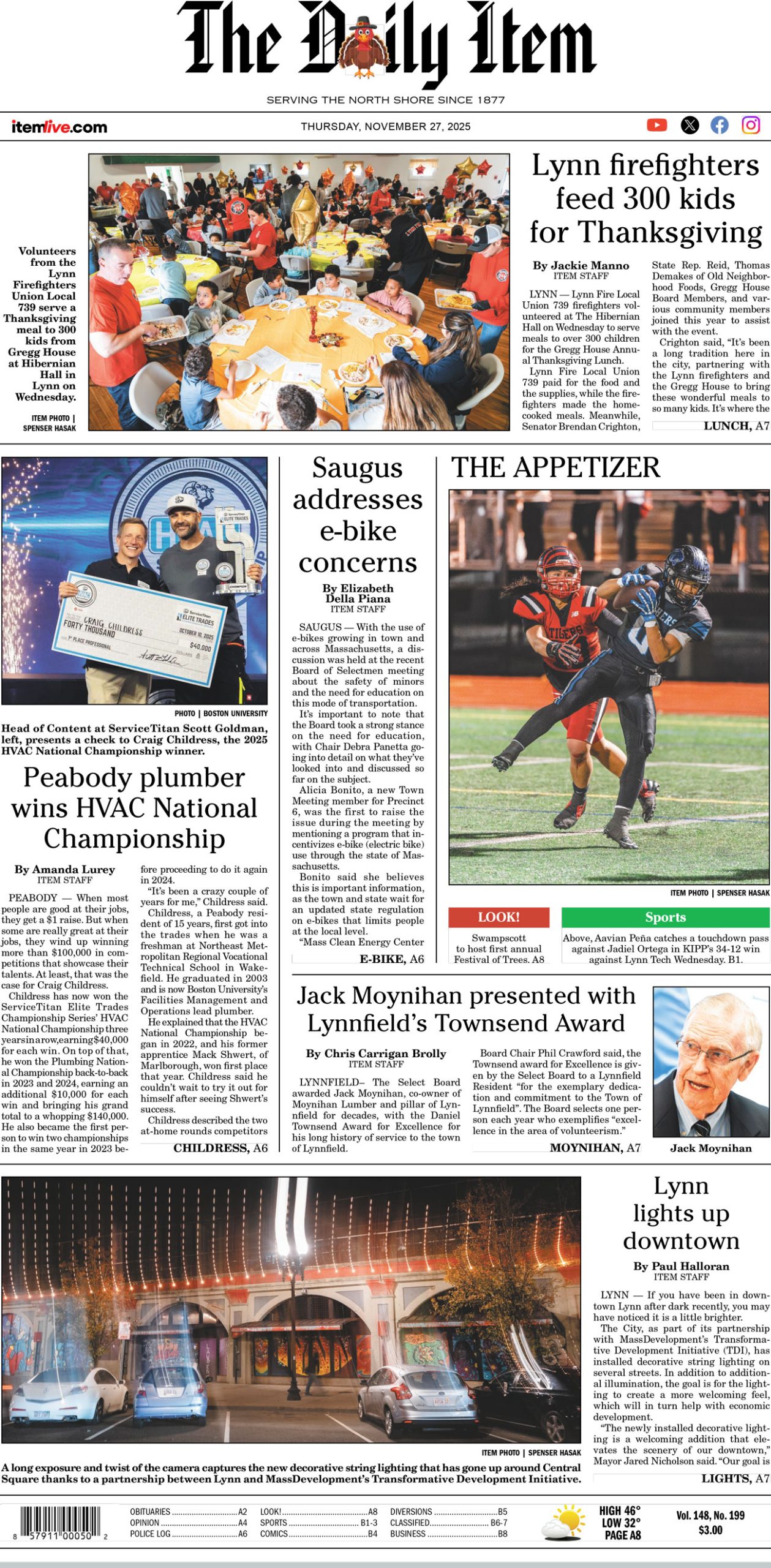 Today’s page 1: 11-27-25 Daily Item StaffNovember 26, 2025 by Daily Item Staff Daily Item Staff View all posts Related posts: No related posts.