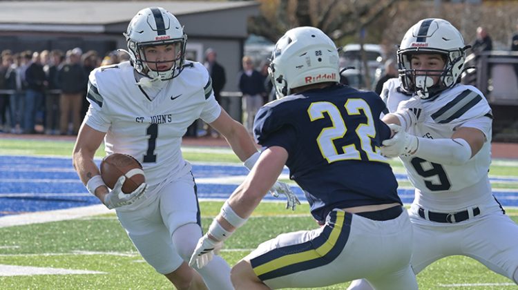 Xaverian fumbled again, with 2:06 left, and St. John’s recovered on the Hawk 48. Moving frantically, the Eagles found themselves with a first down on the Hawk 5-yard line with six seconds to go. Eschewing the game-tying field goal, St. John’s opted for a little trickery.
