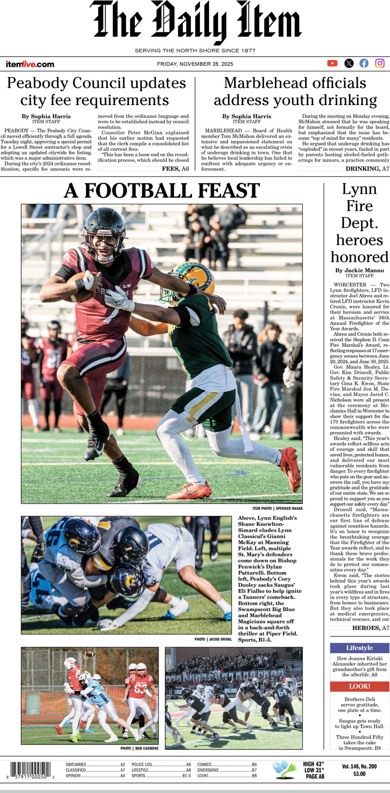 Today’s page 1: 11-28-25 Daily Item StaffNovember 27, 2025 by Daily Item Staff Daily Item Staff View all posts Related posts: No related posts.