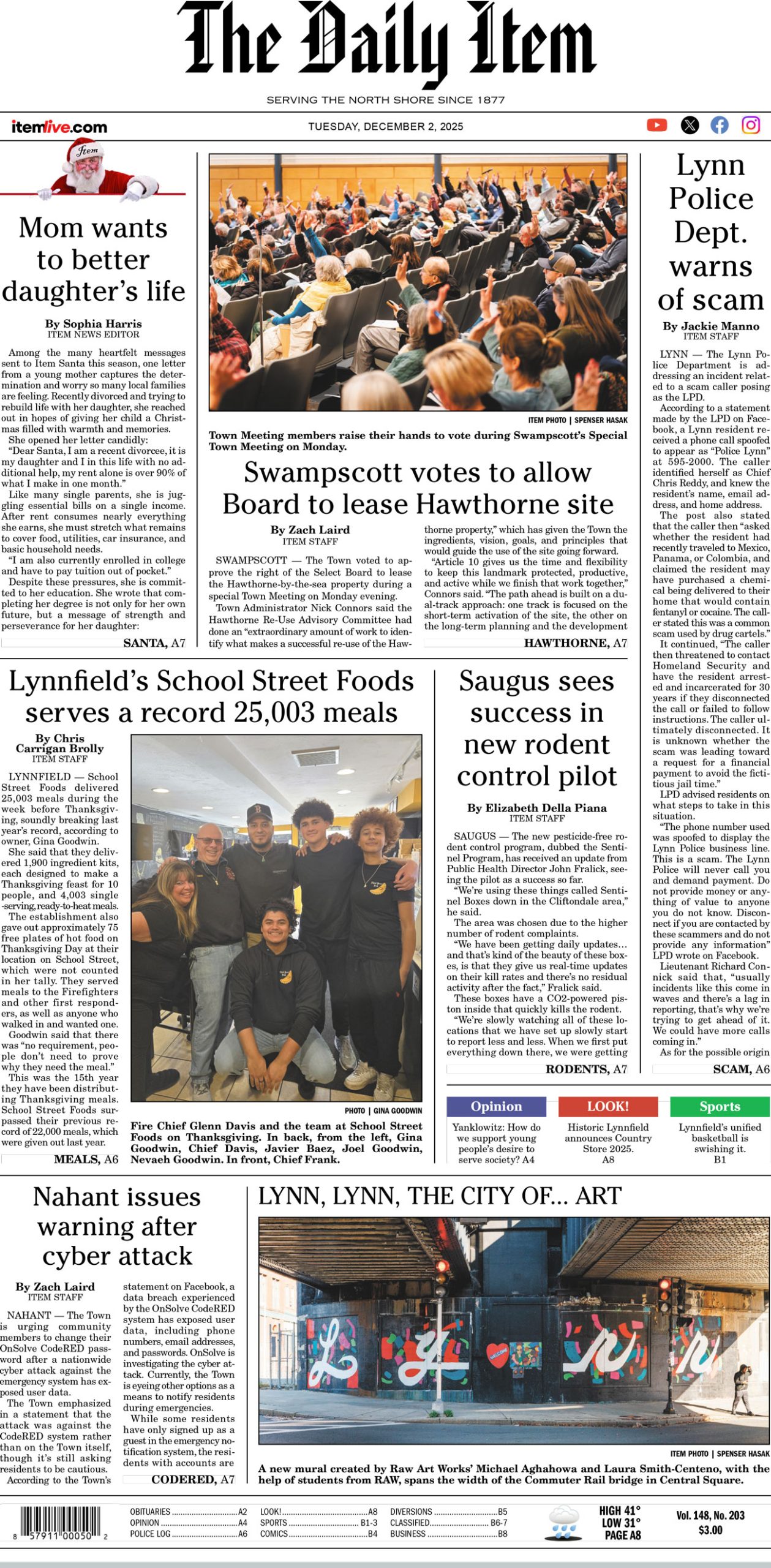 Today’s page 1: 12-2-25 Daily Item StaffDecember 1, 2025 by Daily Item Staff Daily Item Staff View all posts Related posts: No related posts.