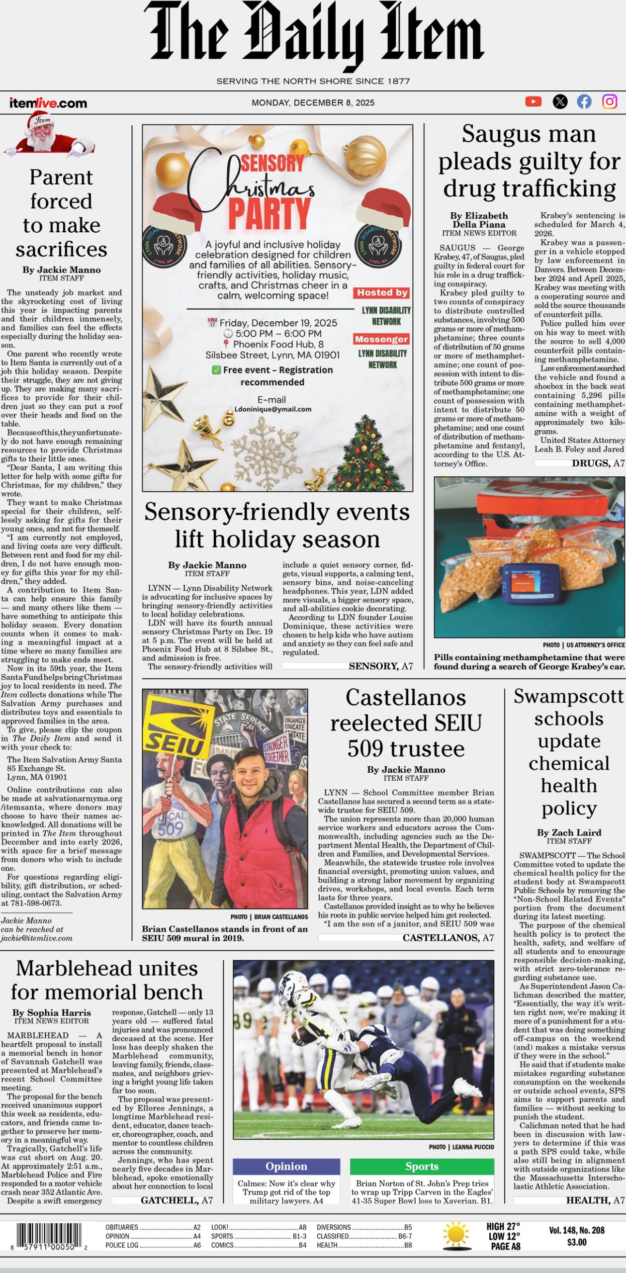 Today’s page 1: 12-8-25 Daily Item StaffDecember 7, 2025 by Daily Item Staff Daily Item Staff View all posts Related posts: No related posts.