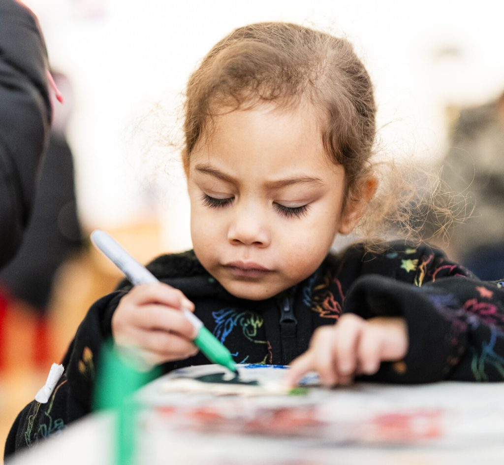 Nashly Juliette Peña focuses on decorating her ornament at Raw Art Works during Lynn's Festival of Lights in Central Square Monday night.
