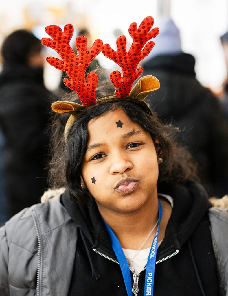 Yumeidy Gomez gets in the holiday spirit during Lynn's Festival of Lights on Monday.