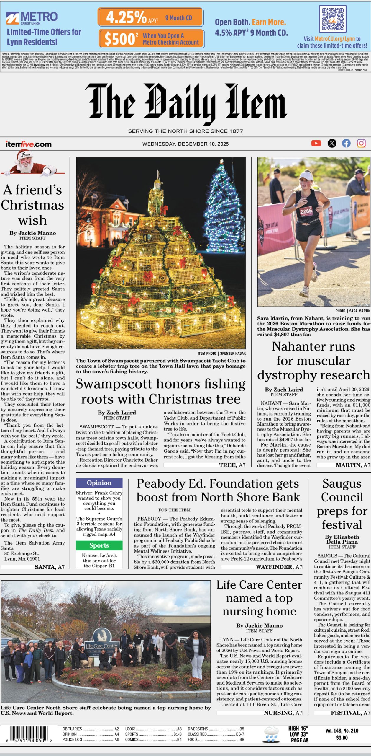 Today’s page 1: 12-10-25 Daily Item StaffDecember 9, 2025 by Daily Item Staff Daily Item Staff View all posts Related posts: No related posts.