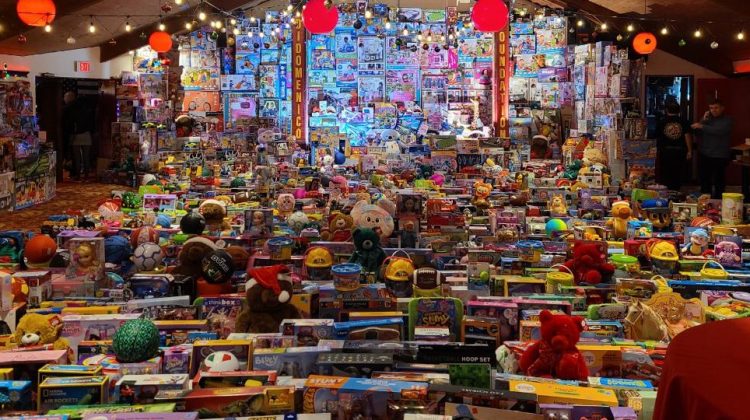 SAUGUS — Every year, the upstairs floor of the Kowloon Restaurant transforms into something out of a holiday movie with stacks of toys covering the walls and the floor.