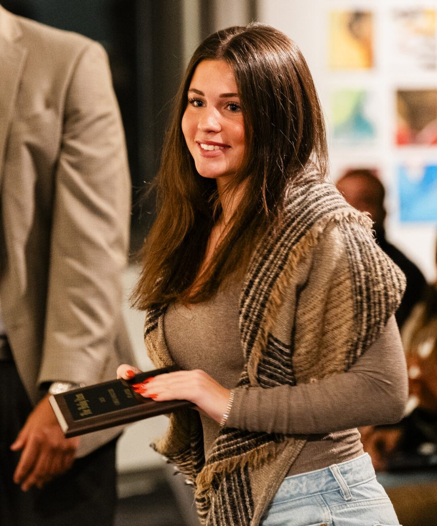 Swampscott's Lila Giard accepts her Fall 2025 Item All-Stars award for field hockey.
