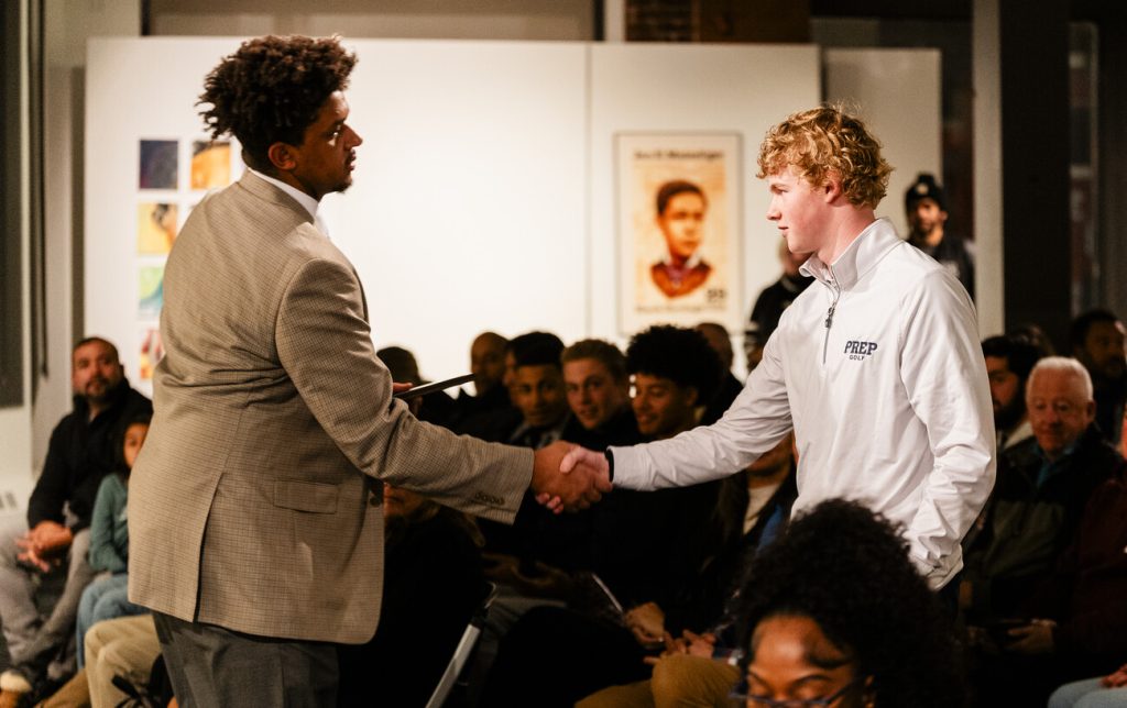 St. John's Prep's Maxwell Parent receives his 2025 Item All-Stars award for football.