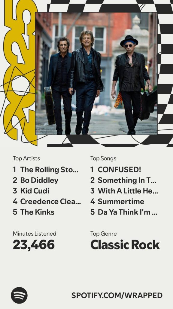 The Rolling Stones was reportedly my top artist, and after spending 910 minutes listening to them, I’ve become a top 0.5% global fan. Not bad, huh?