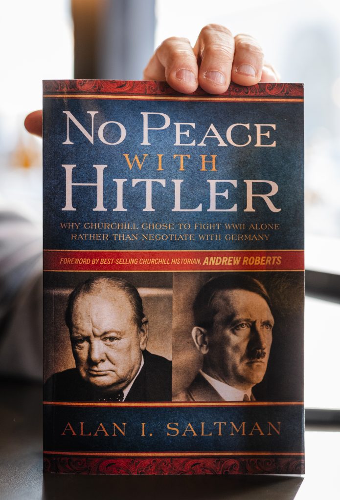 Now that Saltman is semi-retired, a new, unexpected path came into his life: becoming an author. Inspiration struck in 2017 with the release of the war/thriller film “The Darkest Hour.” Directed by Joe Wright, the movie chronicles Winston Churchill’s critical early weeks as British Prime Minister in May 1940. It focuses on the monumental decision he faced: to negotiate peace with Nazi Germany or to continue fighting as Hitler’s forces invaded Western Europe, with the very survival of the nation at stake. Prior to this, there had been no initial interest in or motivation to start writing. He went into the movie not knowing much more about Winston Churchill than the average person and left with the question: Why did Churchill reject peace negotiations with Adolf Hitler?