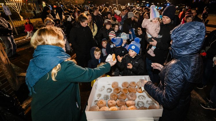 “This is huge that we’re here tonight celebrating our Judaism in the public sphere and not hiding and being afraid, but being out here and still uplifting our values and our traditions during the dark times, it’s so critical,” she said.