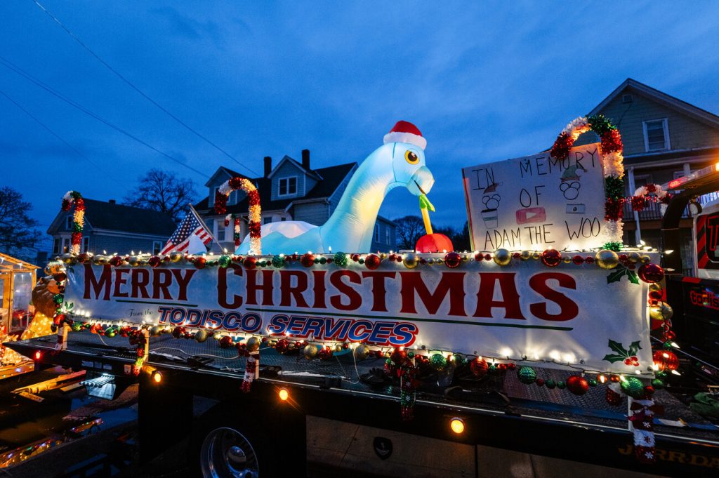 A Lynn Christmas Eve Parade float pays tribute to Adam the Woo.