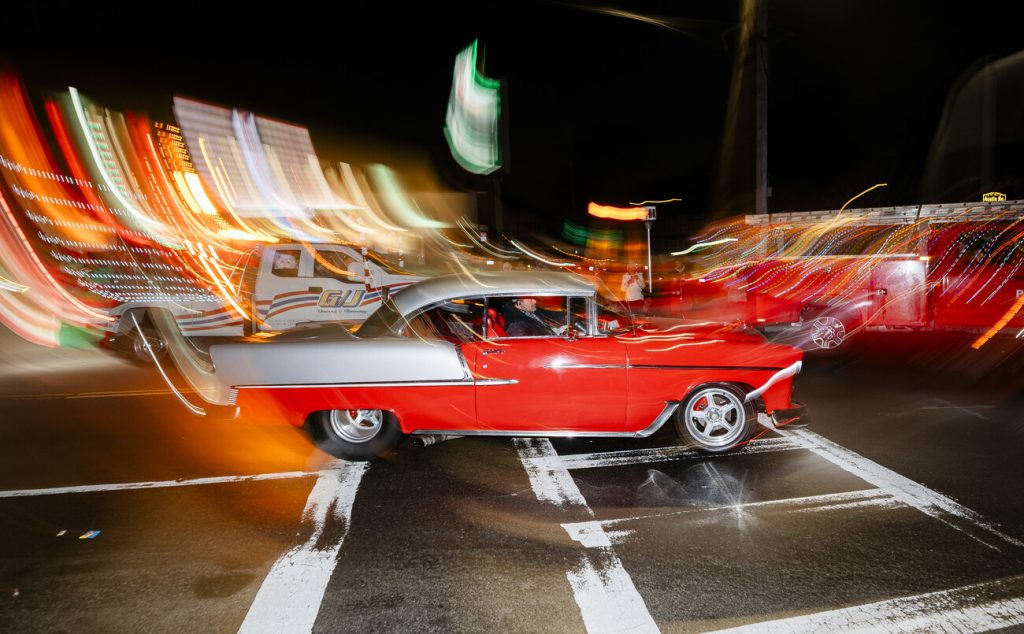A vintage muscle car takes part in Lynn's Christmas Eve Parade.