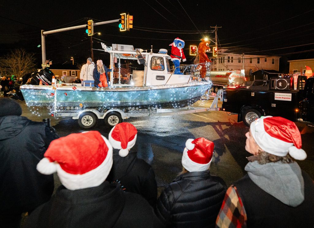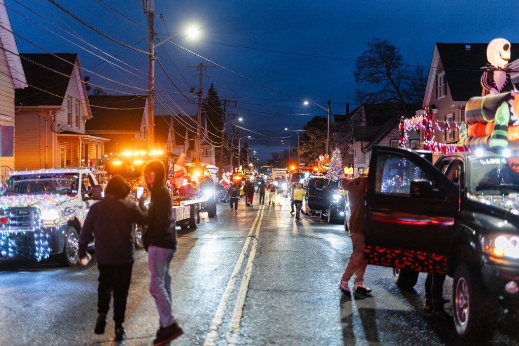 Families gather along Boston Street to watch Lynn's Christmas Eve Parade.