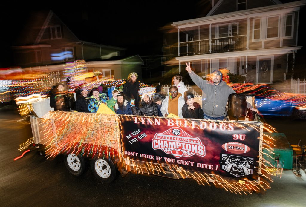 The 2025 Massachusetts Champion Bulldogs football team takes part in Lynn's Christmas Eve Parade.