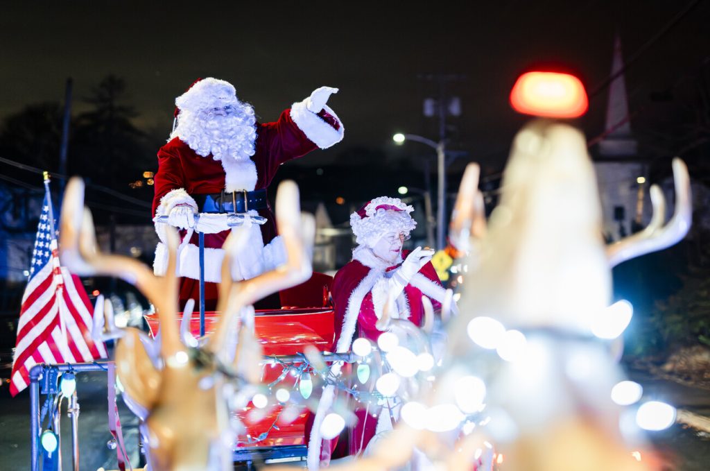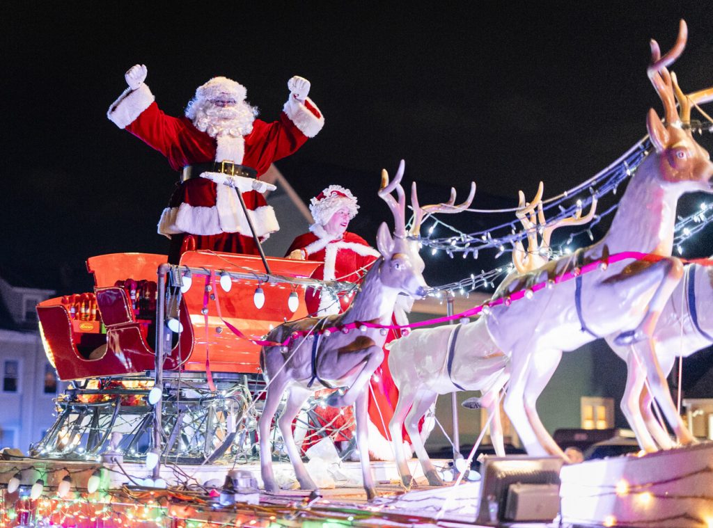 Santa and Mrs. Claus wave to cheering crowds as they pay a visit to Lynn for the annual Christmas Eve Parade.