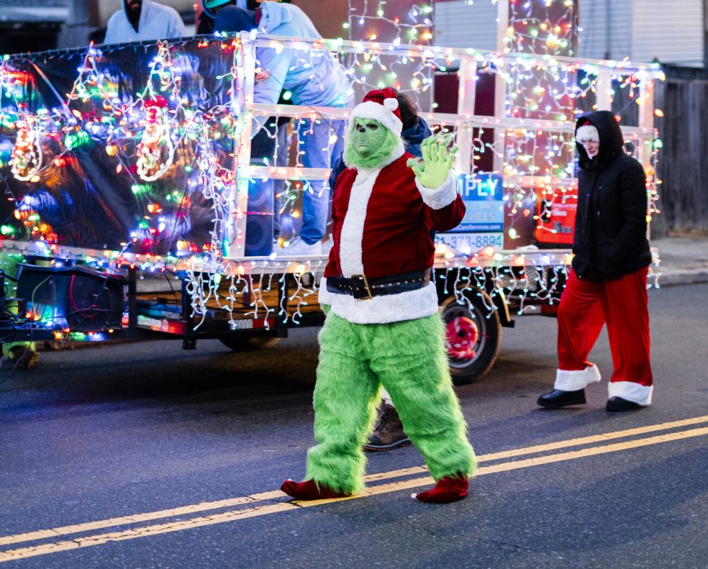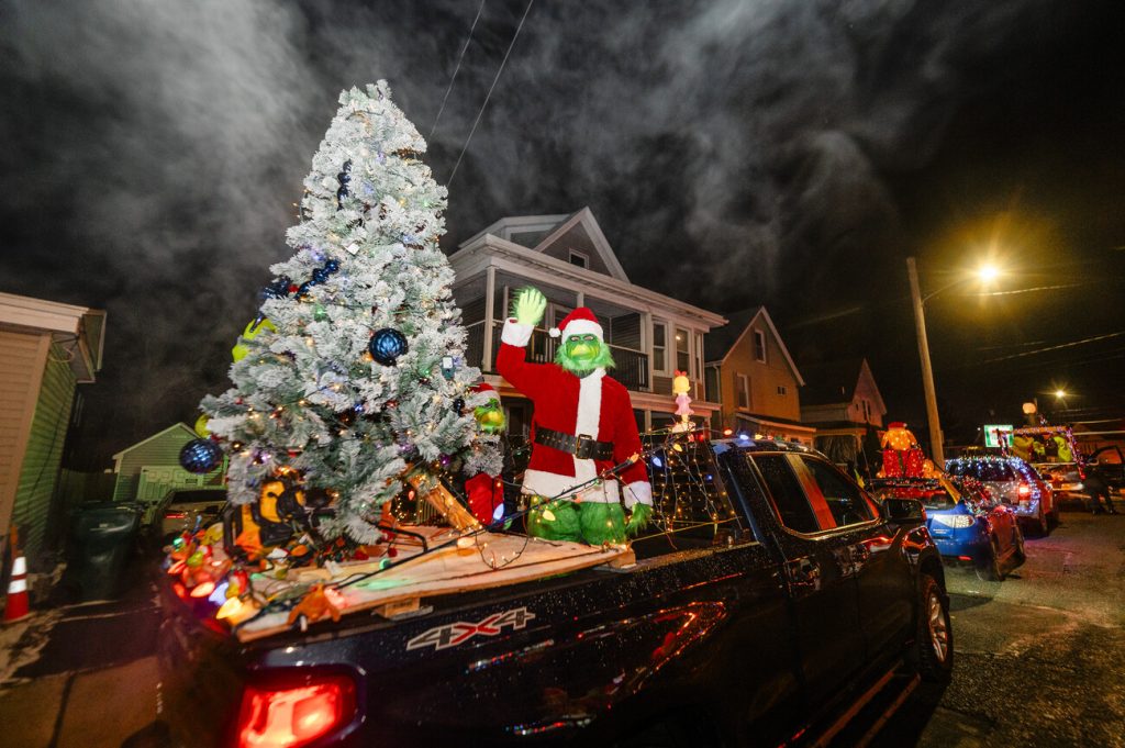 The Grinch and Cindy Lou Who get ready for the Lynn Christmas Eve Parade.