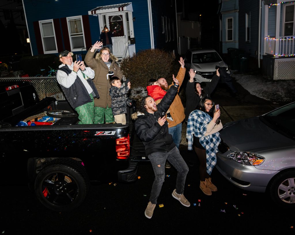 RJ Harper, Isabelle Richeson, Marcus Bowzer, Jimmy Gatchell, Jeff Blanchette , and Rafael Bowzer are ready for Lynn's Christmas Eve Parade.