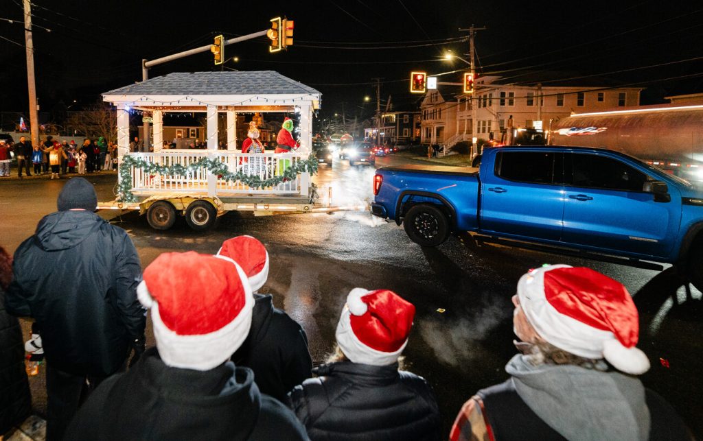 Families gather at the corner of Summer and Boston streets to watch Lynn's Christmas Eve Parade.
