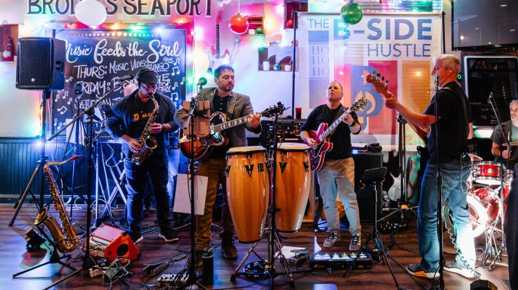 MARBLEHEAD — On a cold, blustery evening in mid-December, the inside of Brodie’s Seaport in Salem was anything but chilly. The dance floor pulsed with energy as The B-Side Hustle — an up-and-coming six-piece band made up of musicians from Marblehead and Swampscott — delivered a joyful, soul-soaked performance that lived up to its reputation as “feel-good music for your body and soul.”