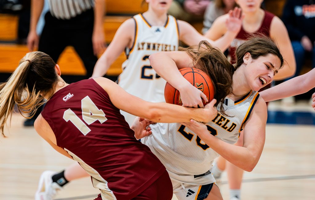 Lynnfield's Chloe Grieves rips the ball away from a Newburyport defender.