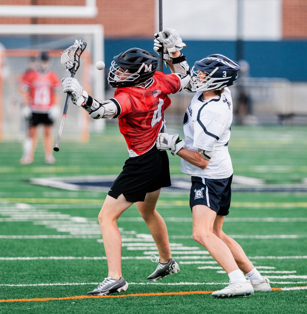 Tough defense from Swampscott's Jay Domelowicz forces Marblehead's Will Sullivan to turn the ball over.