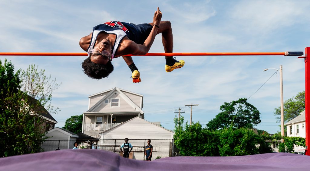 Lynn Tech's Francis Ucheigwe clears the bar as he competes in the high jump during the Lynn All City Track and Field Championships.