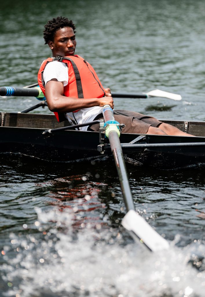 Lynn Tech student Defi Beasnan hones his rowing skills out on Sluice Pond thanks to North Shore Maritime Center.