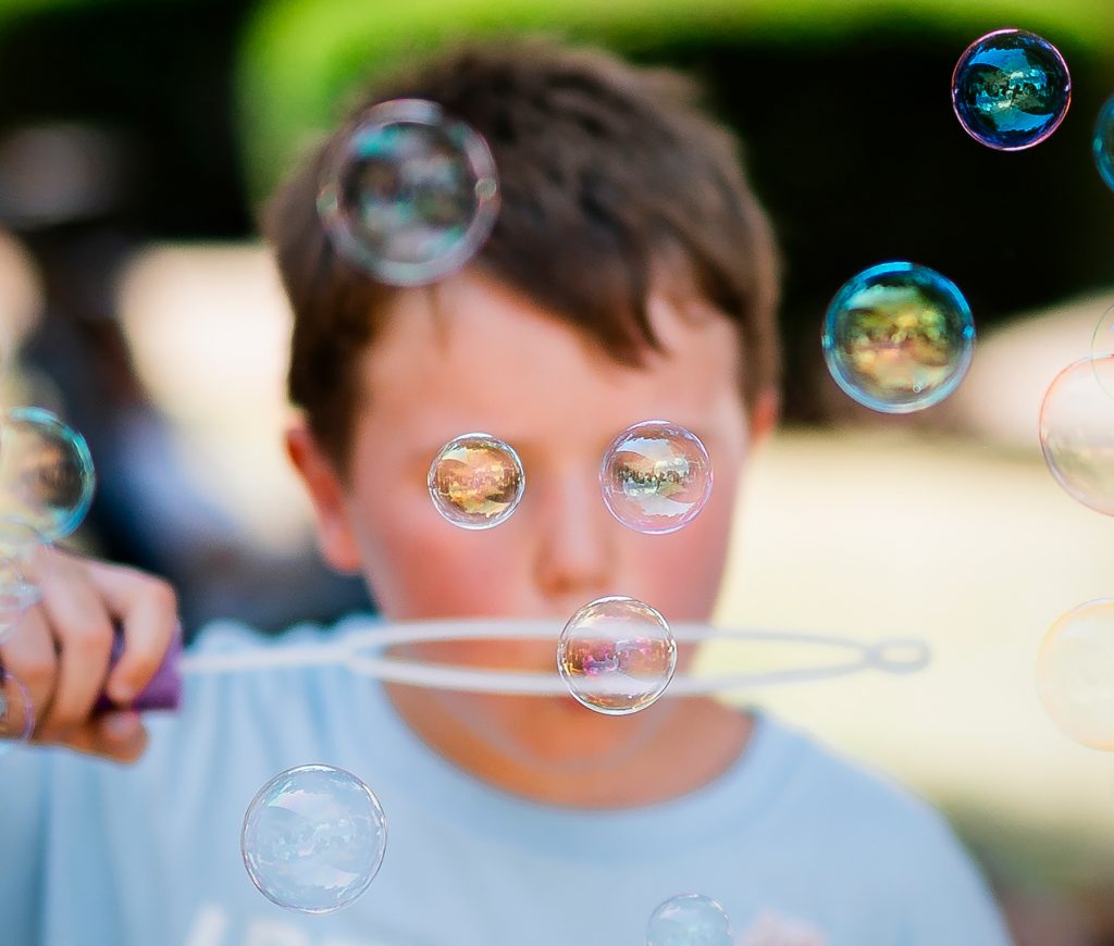 Darrell blows bubbles as he enjoys East Baptist Church's Vacation Bible School in Lynn on Tuesday.