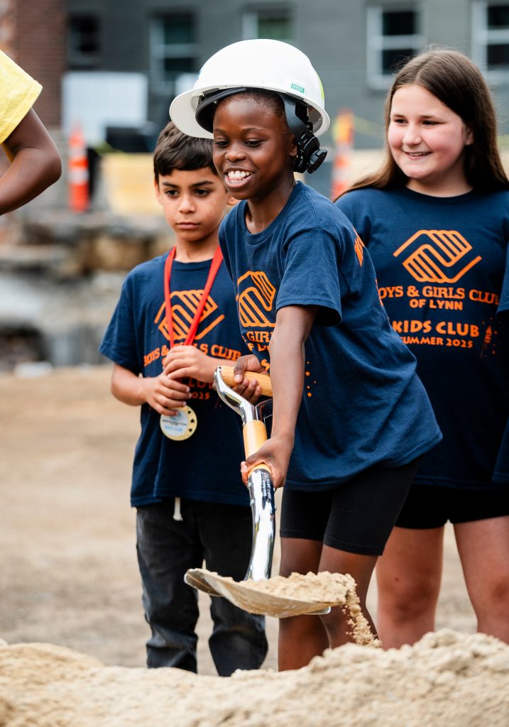 Boys & Girls Club member Jedana Charles throws a shovel-full of sand during the groundbreaking ceremony for Phase 2 of BGCL's expansion project on Thursday.