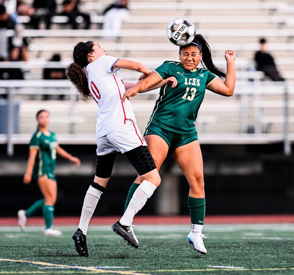 Lynn Classical's Tatiana De Leon gets her head on the ball.