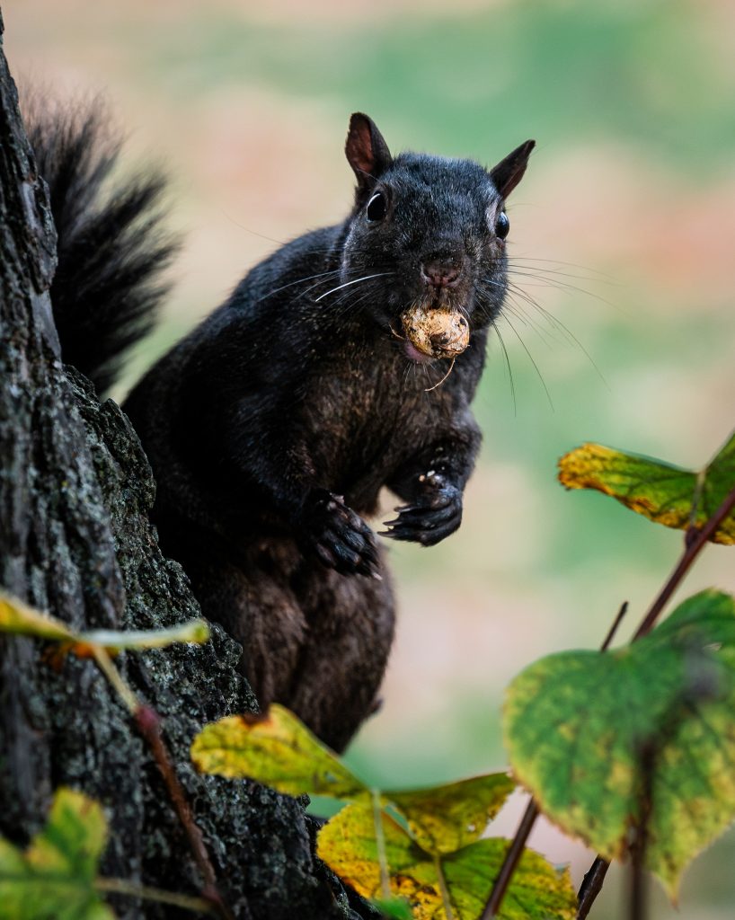 A rare black squirrel munches on a peanut it found while grazing around Lynn Common Monday afternoon.